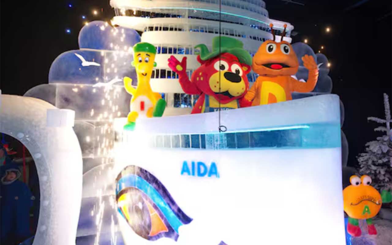 Wie die Ostsee-Zeitung berichtet, ist das Eisschiff Teil der beliebten „Eiswelt“ in Rövershagen. Es handelt sich dabei nicht um irgendein Schiff, sondern um die ikonische Form der AIDA-Flotte, komplett mit dem markanten Kussmund.